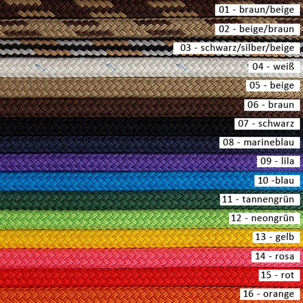 Aus einem speziell von der Seilerei Brockamp entwickelten, zum Horse-Man-Ship Training gefertigten 13 mm starken Polyester Seil in einer Länge von 3,70m mit Lederende.